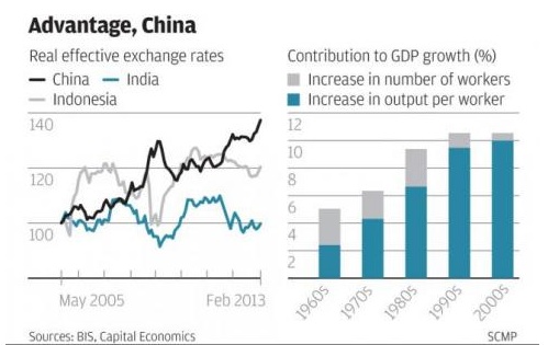 A recent article in the South China Morning Post is the latest to question China’s “competitiveness” through labor and, by extension, the RMB’s consistent appreciation against the US dollar. As many have argued, competitiveness is measured by labor productivity and, more specifically, the size of China’s future workforce as measured by a recent peak in the number of high school graduates.