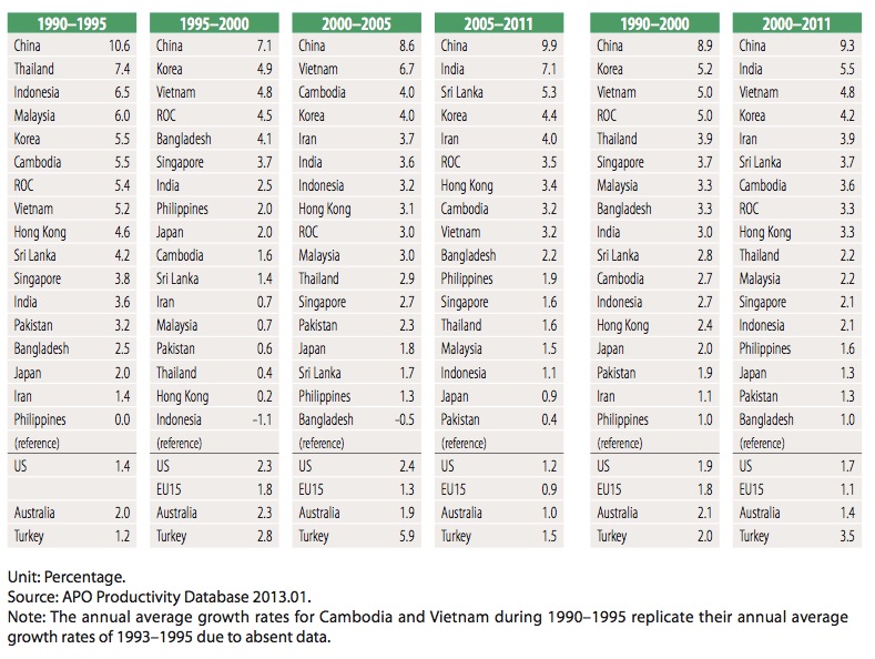 This level of sustained labor productivity is directly related to educational levels. Only China/Korea (1990-2000) and China/India (2000-2011) exceed average Vietnamese growth levels over this time period.