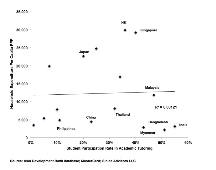 To cite just one example, I have written previously about the demand for academic tutoring across Asia and the interesting finding that spending is not confined to rich countries; in fact some of the poorest households in Asia, such as Myanmar and Bangladesh, are now enrolling among the highest proportion of their children in extra tutoring and academic preparation. Given the low per capita income in such countries we can reasonably assume that these expenditures constitute a significant amount of household income.
