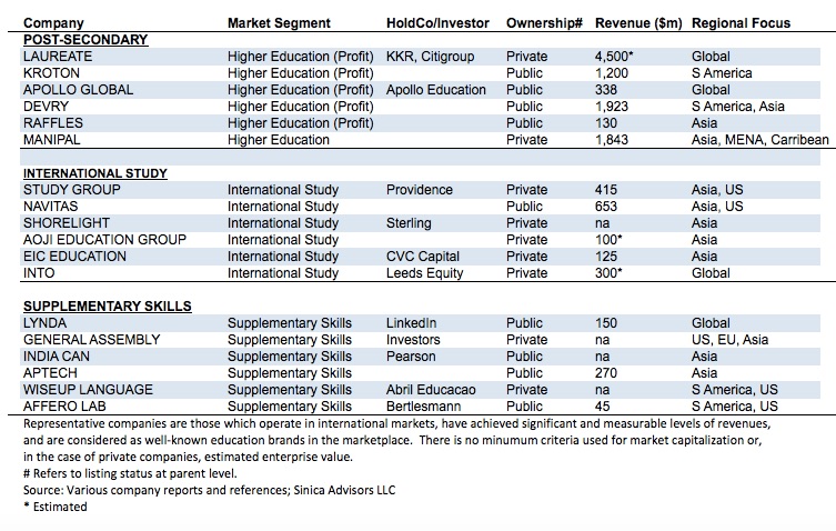 Table 2: Representative Companies By Education Segment: International Study, Higher Education, Supplementary Skills