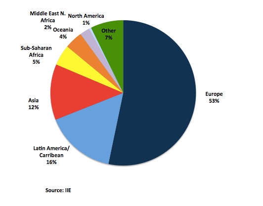 Figure 5 : US Students Abroad by Region (Percentage of Total), 2013