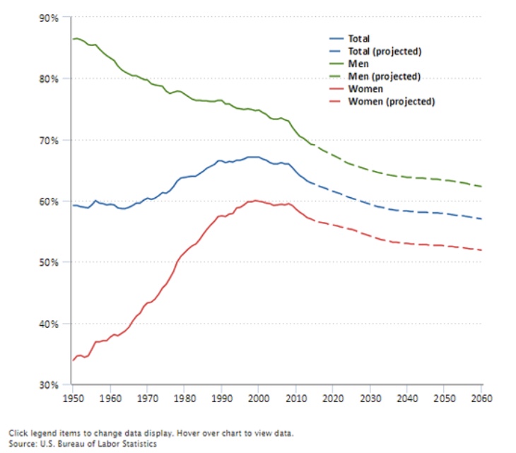 US Employment Participation Rates, Projected through 2060