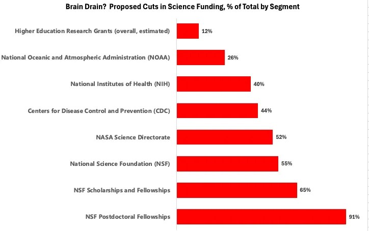 - Cuts to Federal Research Funding: Reductions in NIH and NSF budgets have left universities scrambling for resources, jeopardizing research projects and graduate training.